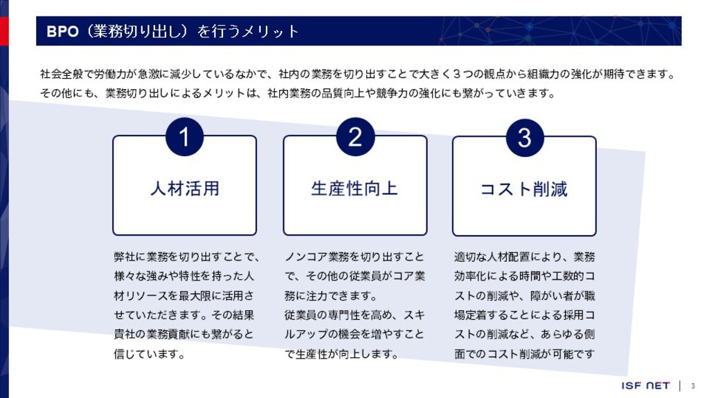 当社独自の「ダイバーイン」体制のもと、特性や経験を活かしたBPO(業務委託)を行い、企業の生産性向上と社会的価値の両立を実現します。営業支援・データ入力・PCキッティングなど、短期・小ロットから柔軟に対応可能です。
